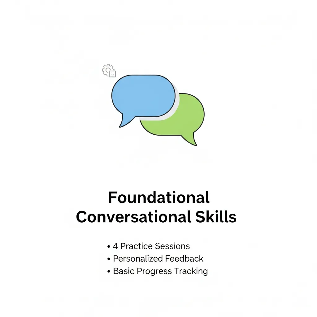Ideal for beginners looking to build foundational conversational skills. Includes 4 practice sessions with personalized feedback and basic progress tracking.